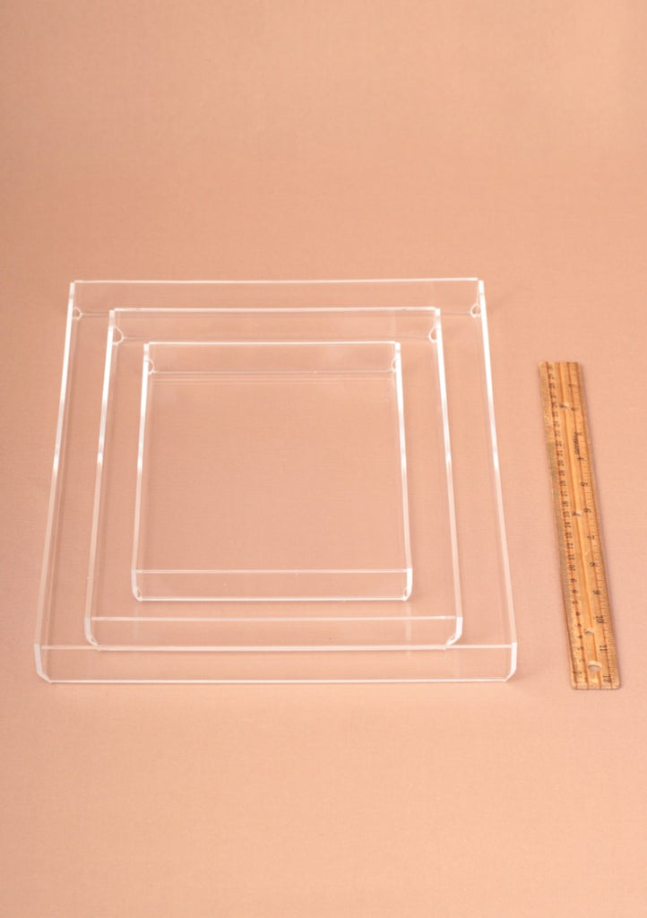 DESCRIPCIÓN: Charolas de acrílico con diseño súper sencillo y elegante. Estas charolas son diseñadas por Lola y producto único de Casa de Lola.