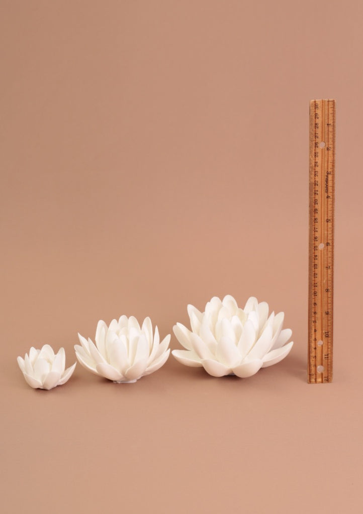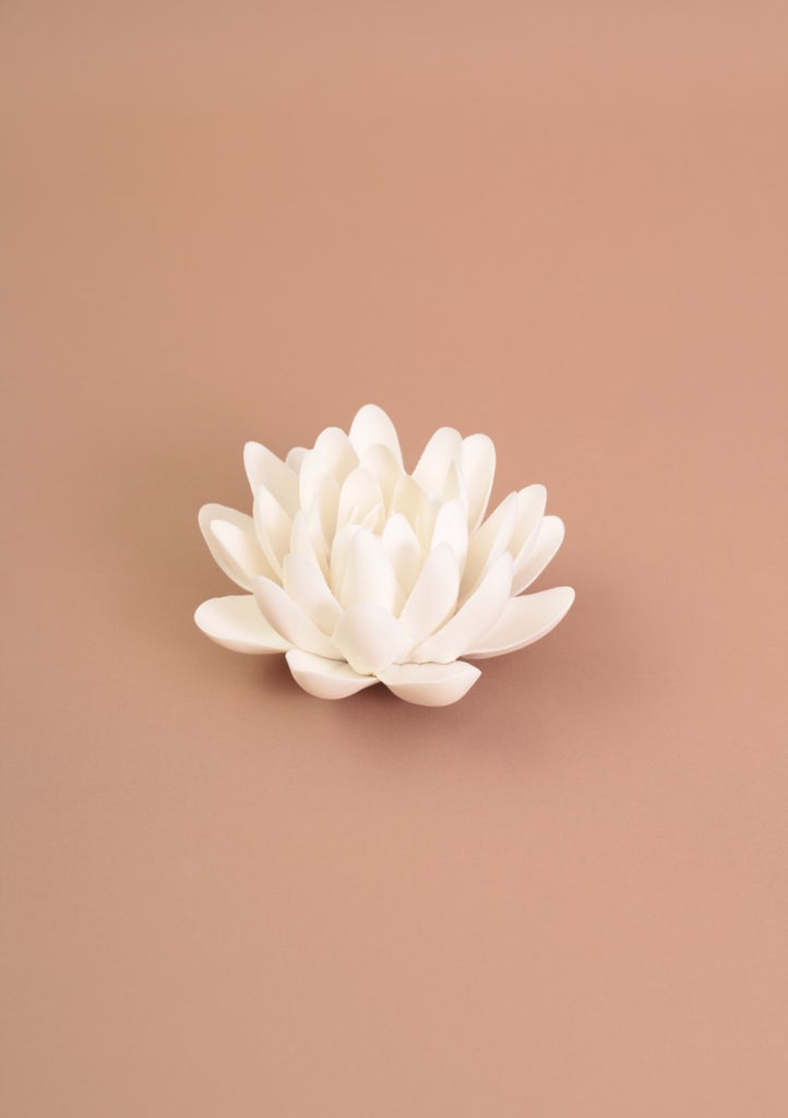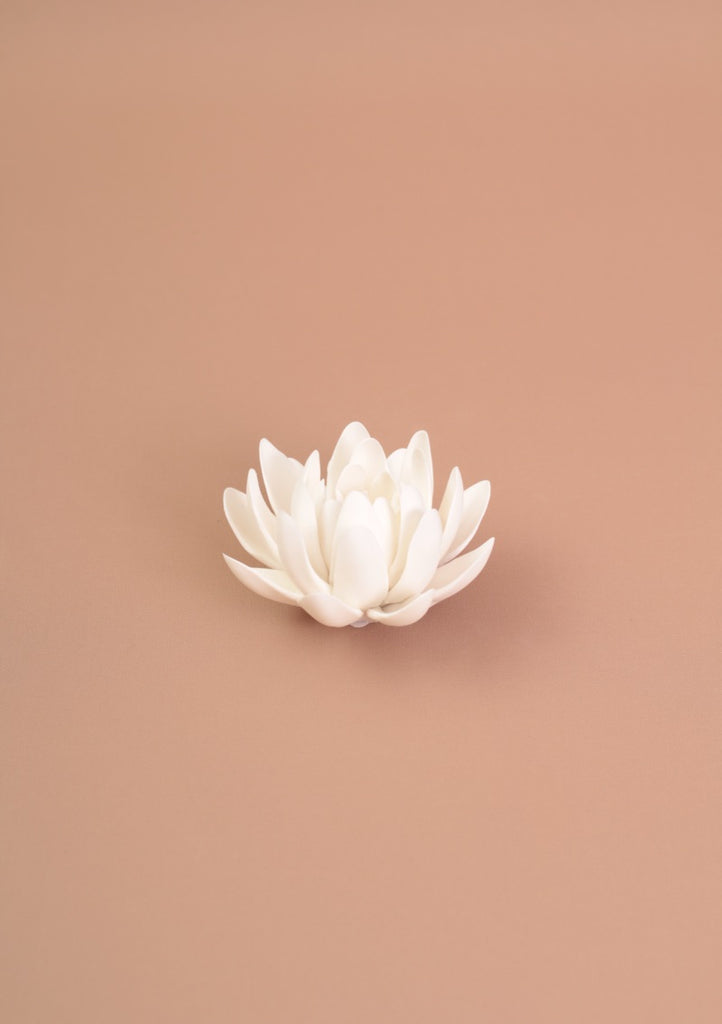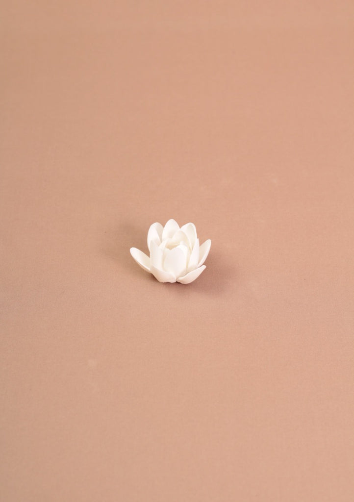 DESCRIPCIÓN: Flor de cerámica blanca sin esmaltar (textura mate). Estas flores están diseñadas para decorar cualquier espacio, desde una mesa, un librero o un espacio de meditación. Lo mejor de todo es que tienen un agujero al centro para poder quemar palitos de incienso de una manera muy original.