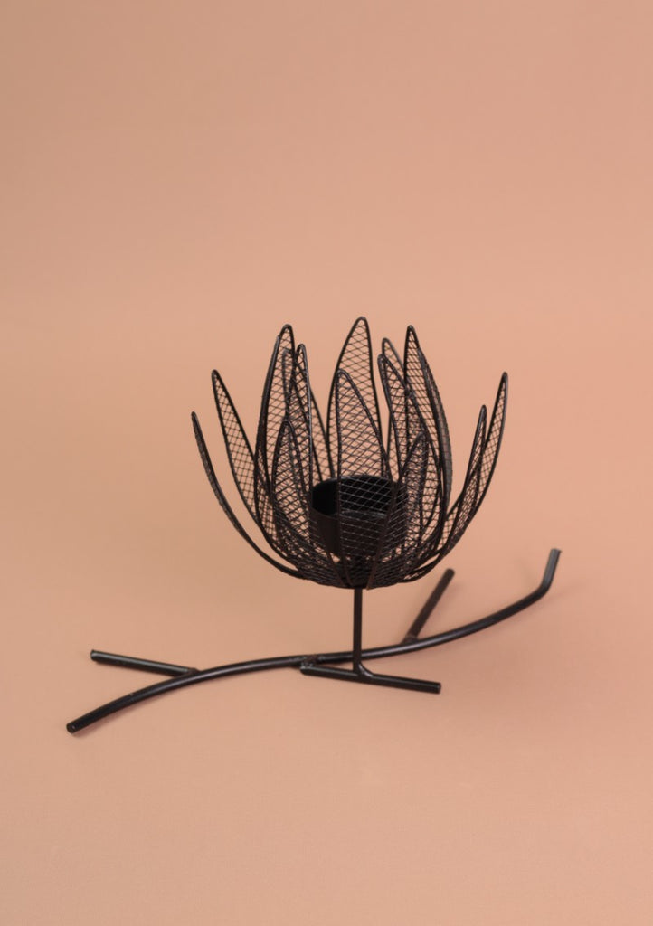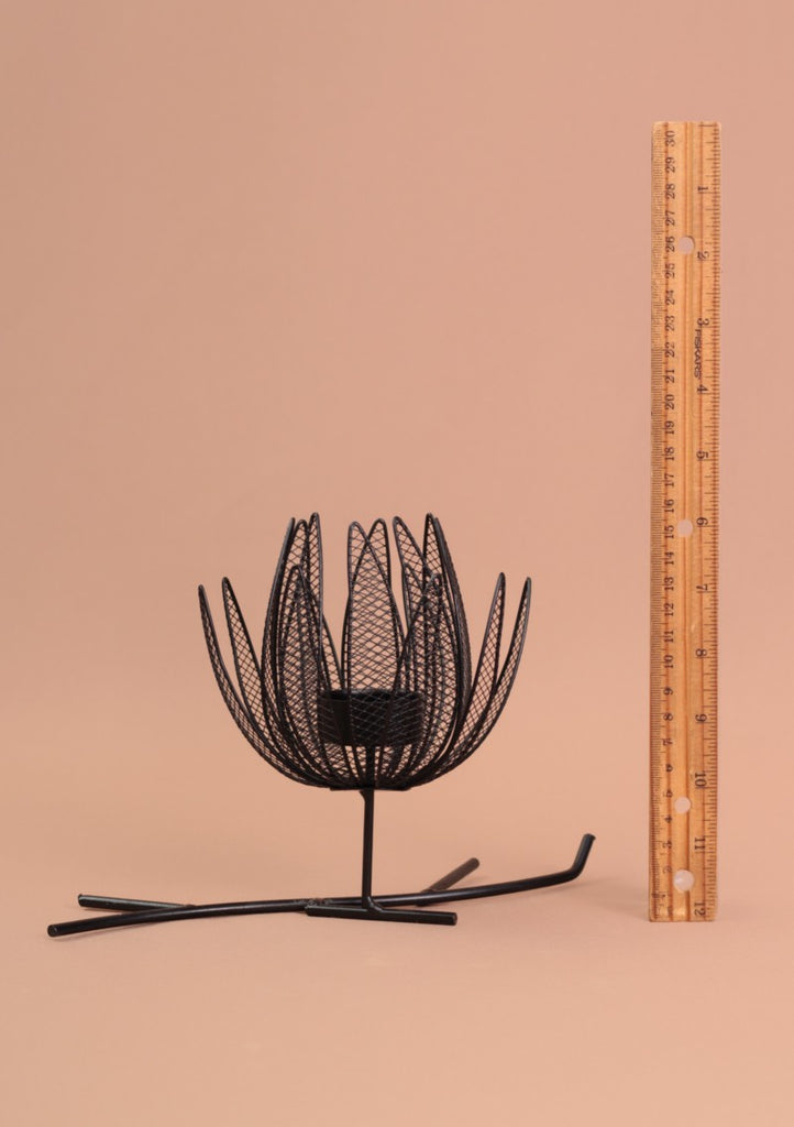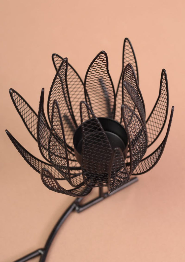 Este candelero esta hecho de fierro, con acabados rústicos ideal para un racho, se ven padrísimos en el jardín de una casa de campo. Tienen forma de una flor de loto.