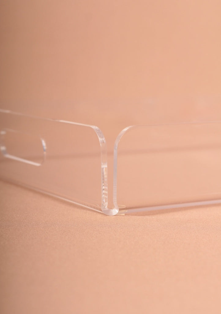 DESCRIPCIÓN: Charola de servicio en acrílico transparente. ¡Como para llevar el desayuno a la cama!