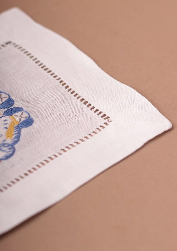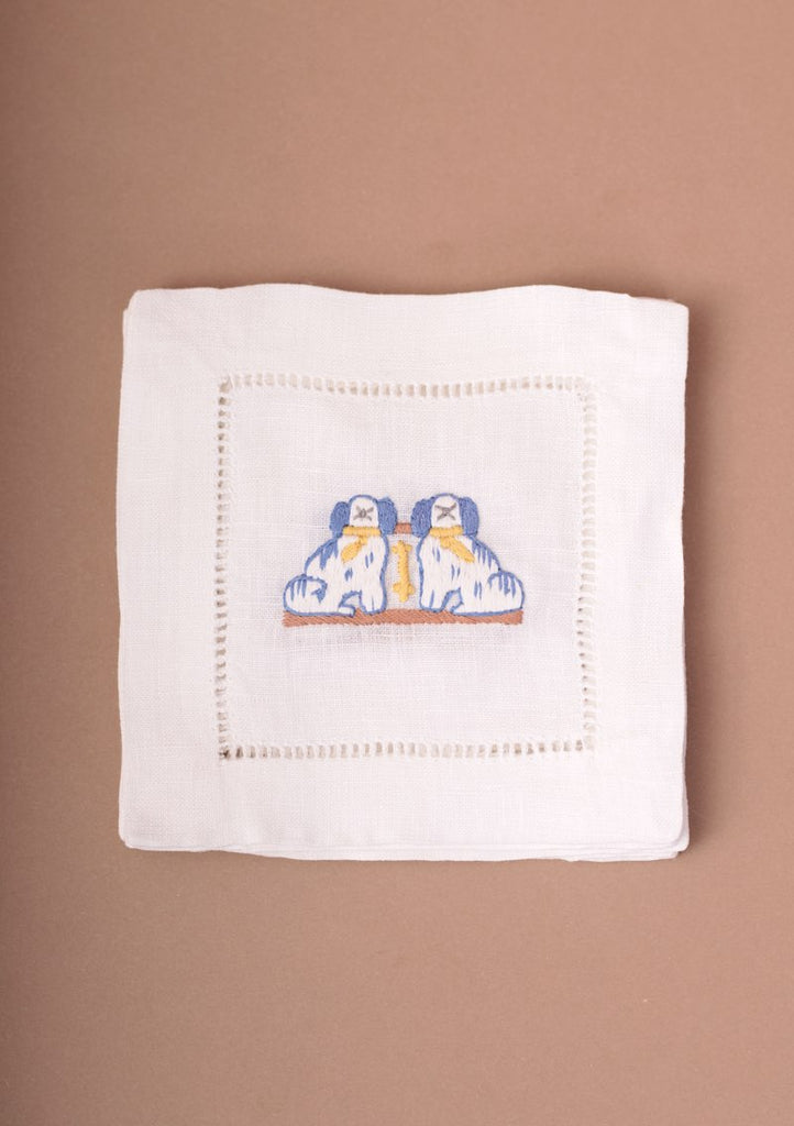 DESCRIPCIÓN: Juego de 6 servilletas de lino con diseño clásico de vainica simple y un bordado artesanal de animales. Sirve tus drinks con la línea mas chic. Combina las 4 modelos para un look informal. Ideal para fiestas, reuniones o cenitas casuales.
