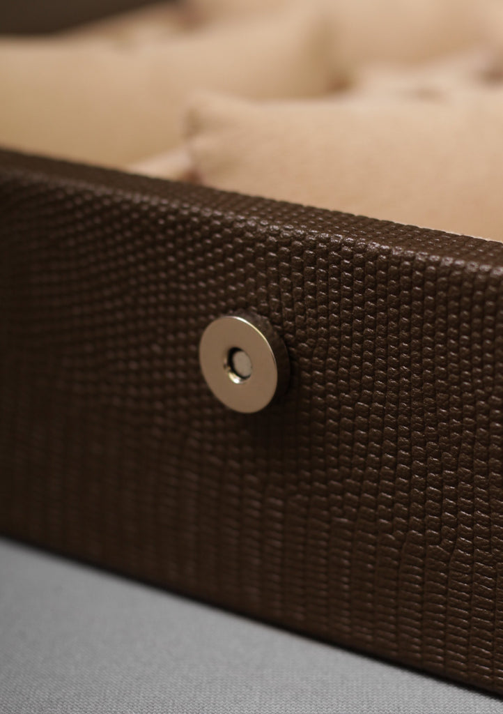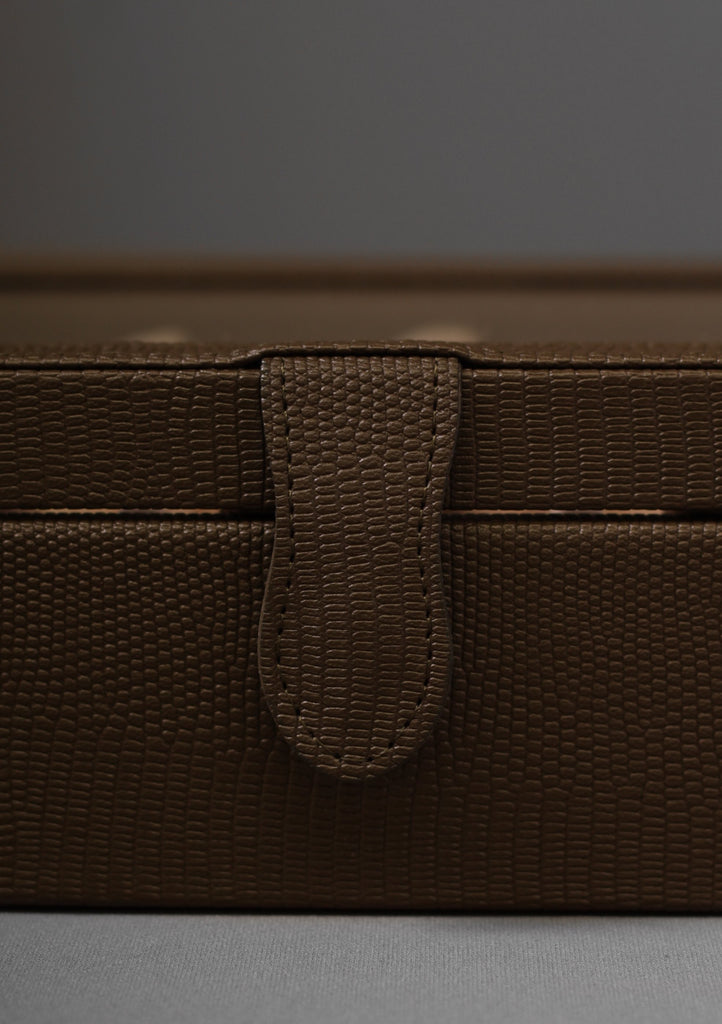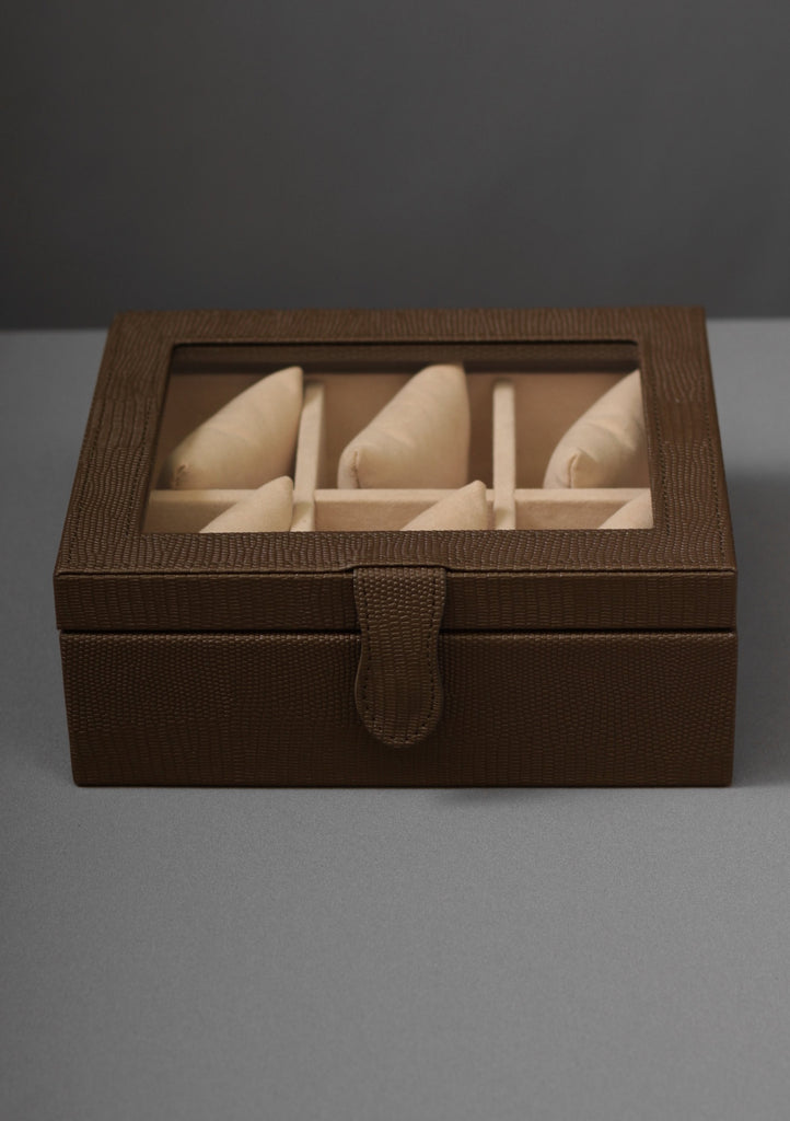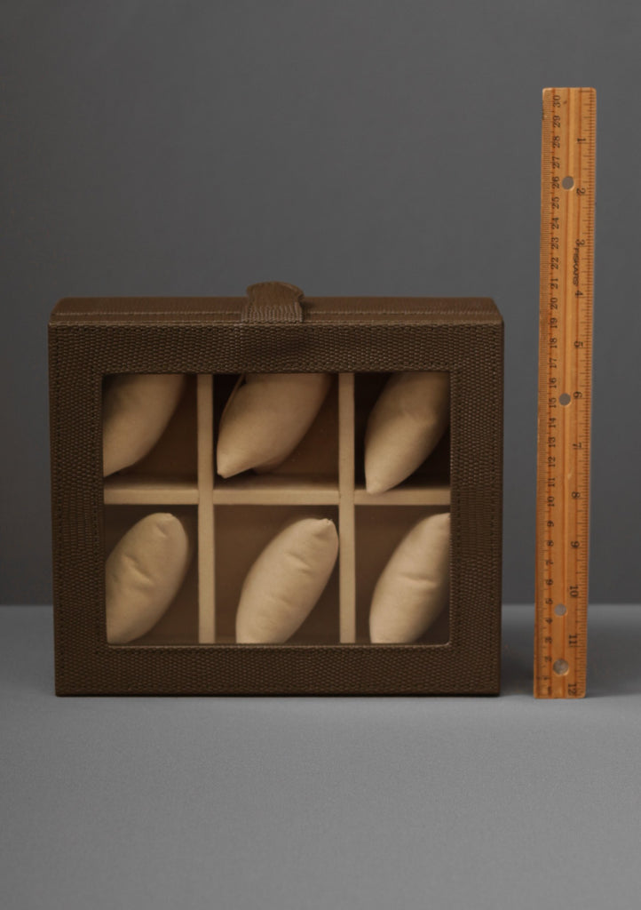 DESCRIPCIÓN: Caja de 6 compartimientos para guardar relojes elaborado en curpiel de alta calidad. Cada almohadilla le da estructura a tu reloj para protegerlo de rayaduras y evitar deformaciones. ¡Tus relojes se verán increíbles en esta caja!