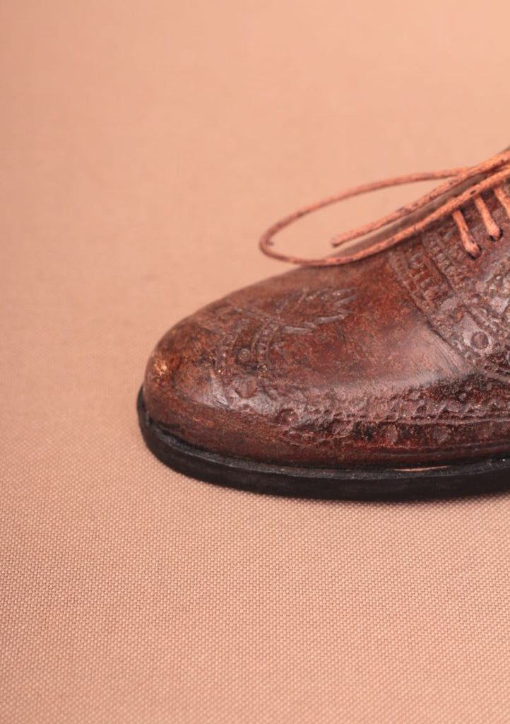 DESCRIPCIÓN: Replica de un zapato clásico en miniatura hecho en bronce. Es un objeto bastante peculiar para poner en el escritorio, sobre una mesa de café o un librero. Como pesa bastante, es perfecto como pisapapeles.