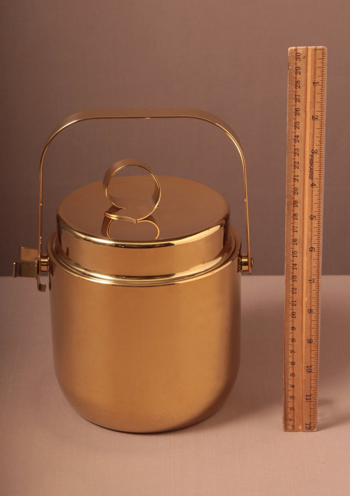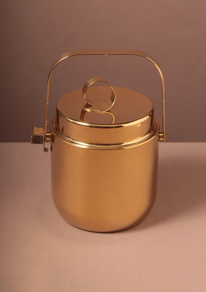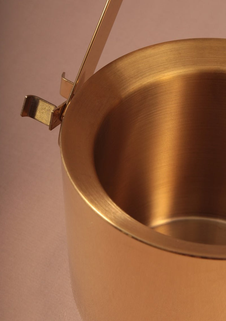 DESCRIPCIÓN: Hielera dorada de latón con pinzas. Estas hieleras además de tener un diseño chic, mantienen super bien el hielo. Un accesorio que no puede faltar en tu bar. Tenemos dos diseños uno con tapa y uno sin tapa para enfriar la botella.