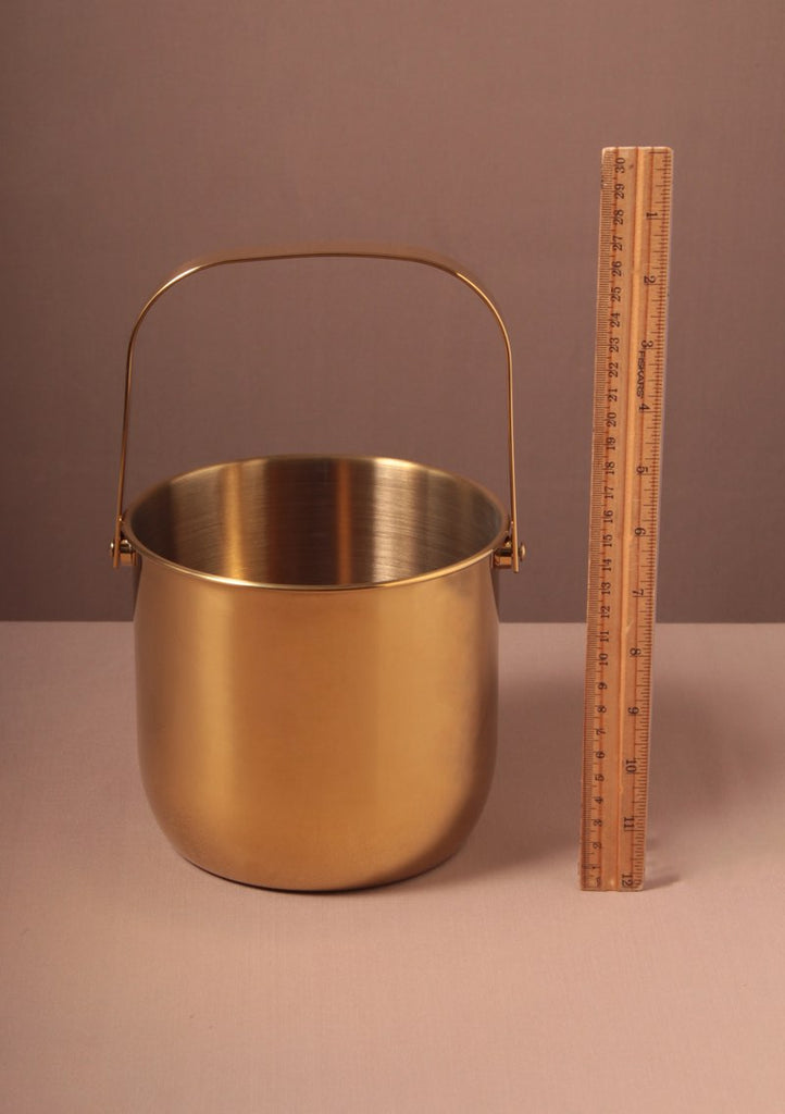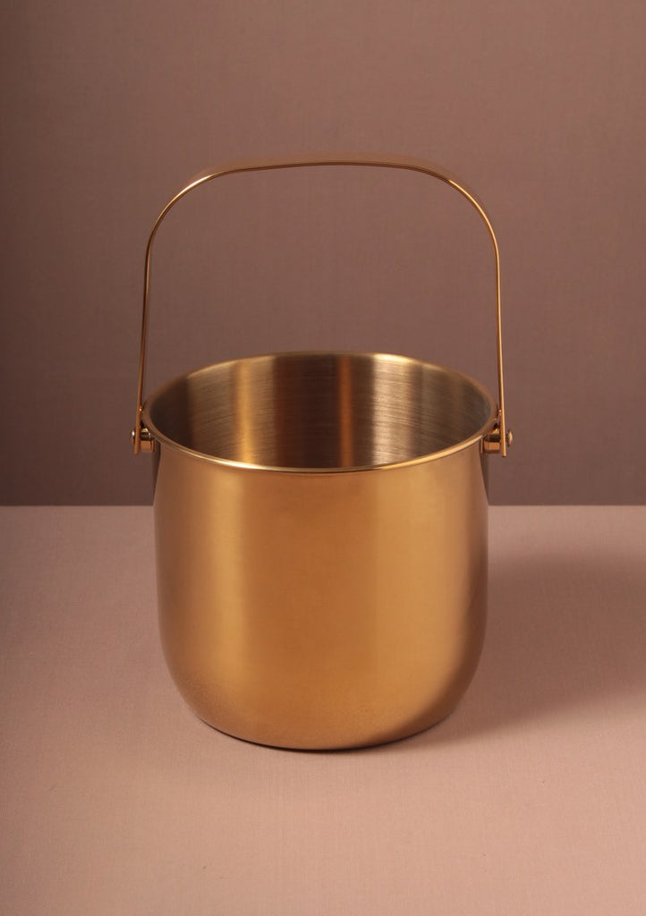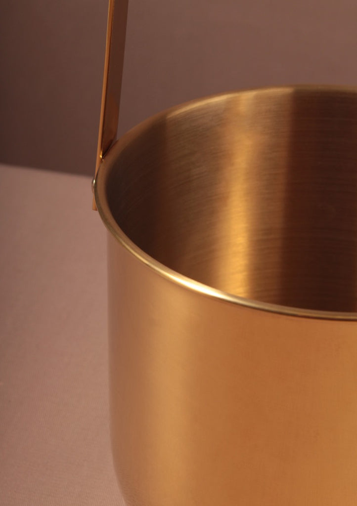 DESCRIPCIÓN: Cubeta para hielos dorada de latón. Estas hieleras además de tener un diseño chic, mantienen super bien el hielo. Un accesorio que no puede faltar en tu bar. Tenemos dos diseños uno con tapa y uno sin tapa para enfriar la botella.