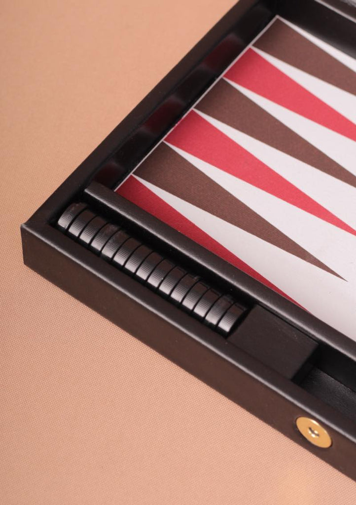 DESCRIPCIÓN: Juego clásico de backgammon de curpiel tamaño chico. El backgammon es de los juegos más antiguos, imagínate. ¡lo jugaban en Mesopotamia!