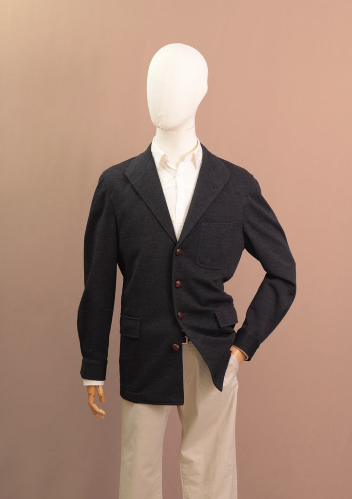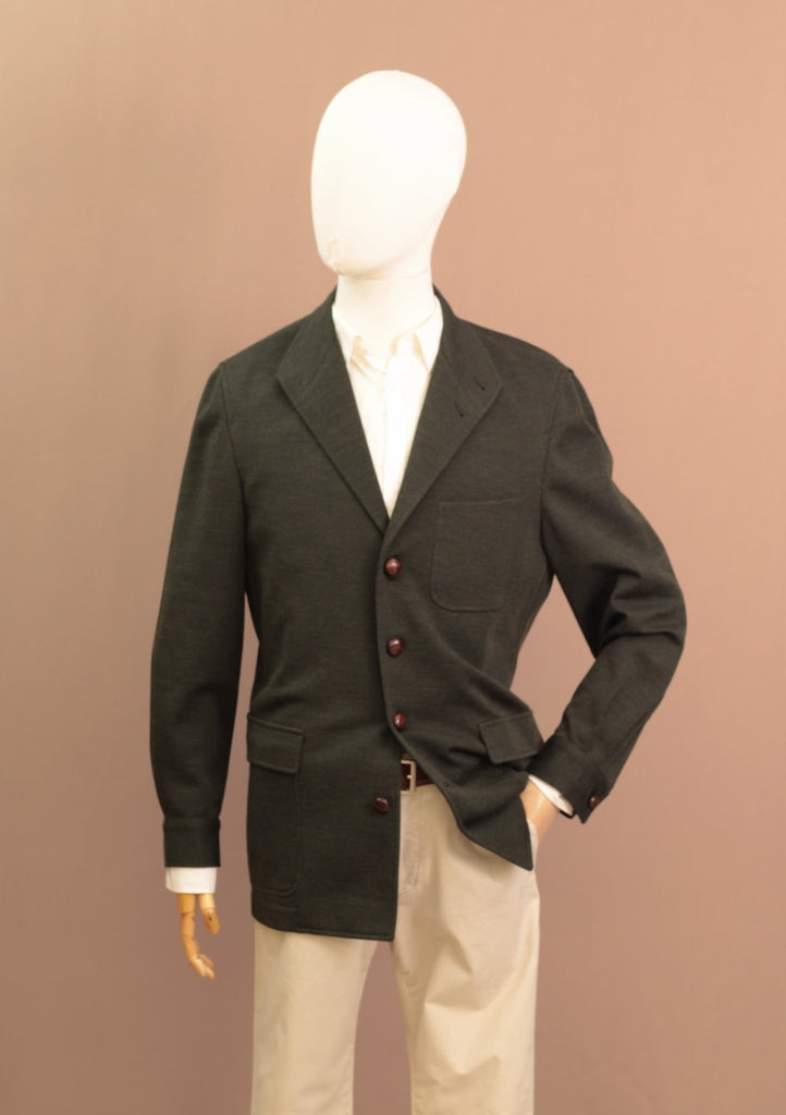 DESCRIPCIÓN: La teba es una chaqueta de hombre clásica en España. Es in ícono de la moda masculina y elegancia relajada. Tiene un diseño entre la americana y la chaqueta tipo safari. De corte recto, cuello tipo camisa, bolsillos grandes, cierre de botones 3 o 4 máximo. Generalmente se hacen de lana, lino, algodón o mezcla.