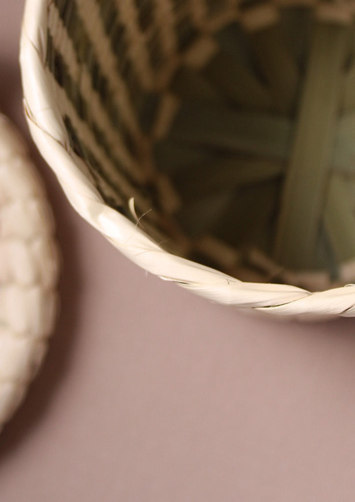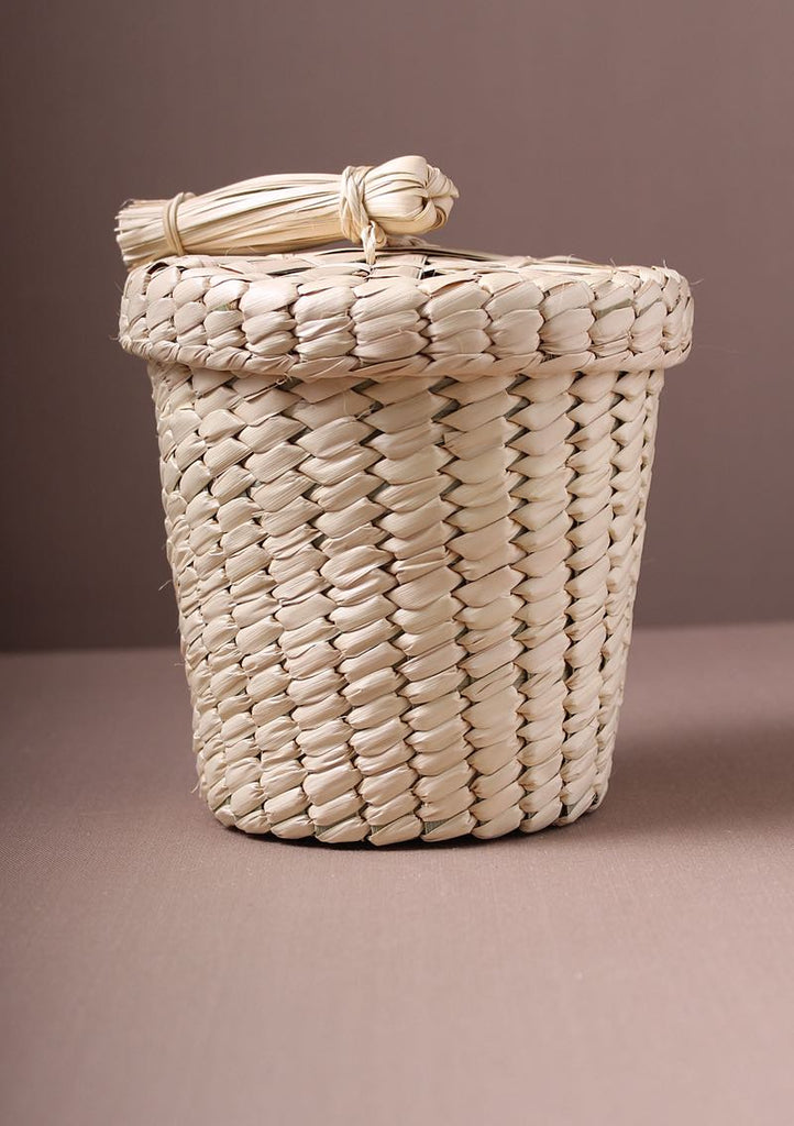 DESCRIPCIÓN: Funda de palma con tapa para poner el bote de helado (1lt) y poderlo servir en la mesa. Esta línea de productos es fabricada en Guerrero por artesanos locales.