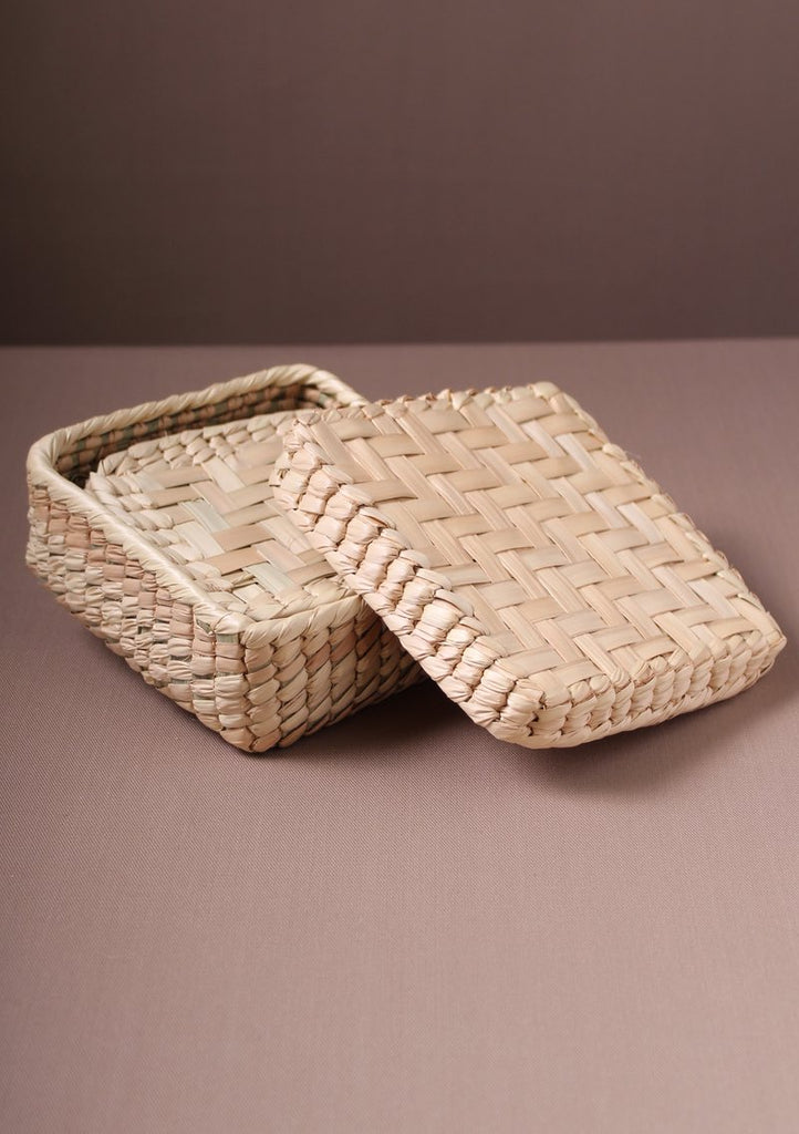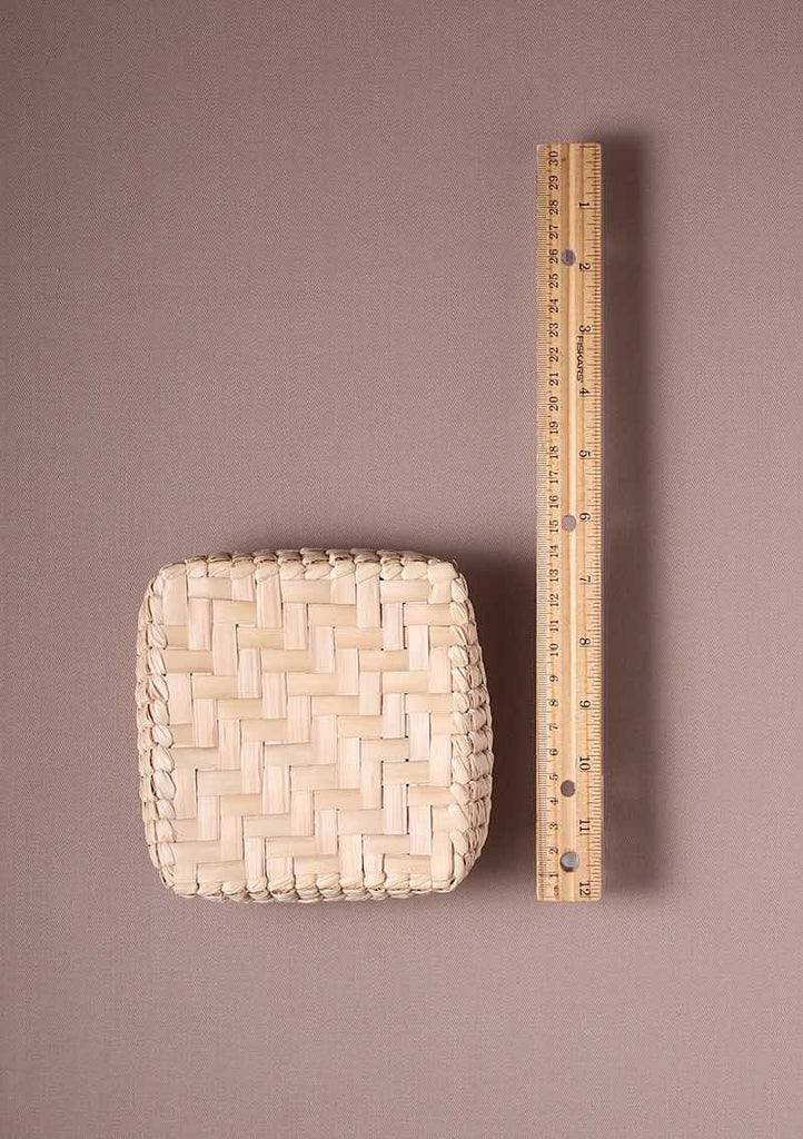 DESCRIPCIÓN: Cajita de con seis portavasos hechos artesanalmente de palma natural. Producto 100% mexicano.