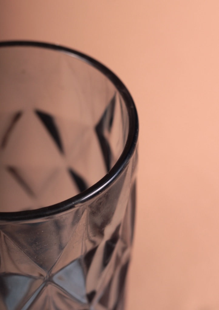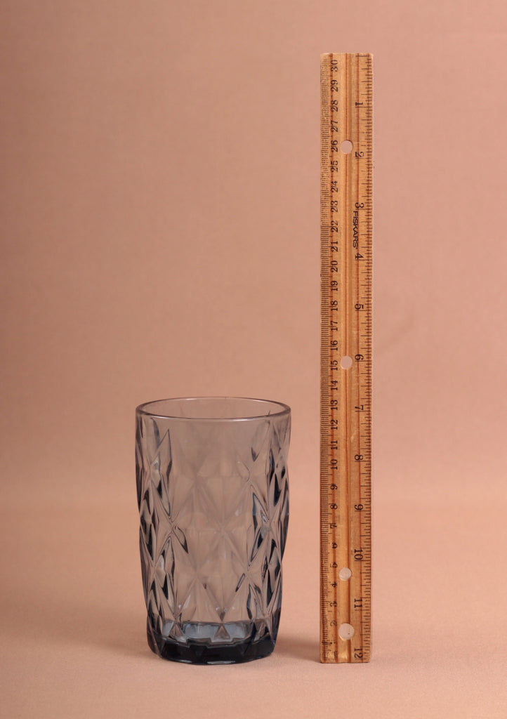 DESCRIPCIÓN: Copa de cristal prensado con diseño original de corte diamante en color gris humo. Toda nuestra cristalería de colores es padrísima porque le dan a tu mesa un toque de color tanto divertido como elegante. Puedes mezclar colores... ¡Queda increíble!