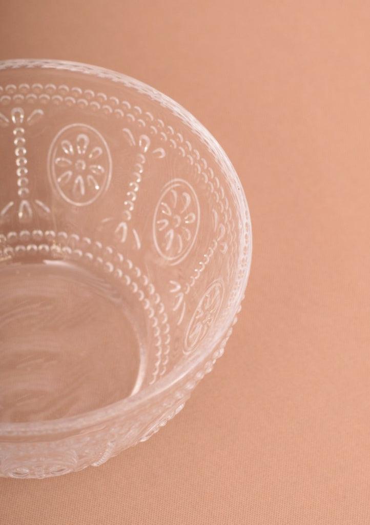 Tazón chico con detalles brocart. Su diseño es mas moderno que el clásico brocart; combina con cualquier estilo. Tenemos dos tamaños; son super útiles para servir postres, gazpachos, o alguna fruta de temporada. Se verán divinos en tu mesa.