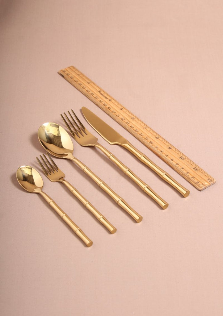 DESCRIPCIÓN: Un regalo de bodas ideal. Estos cubiertos de acero inoxidable en color dorado están súper de moda. Son modernos y originales pero mantienen un diseño minimalista.