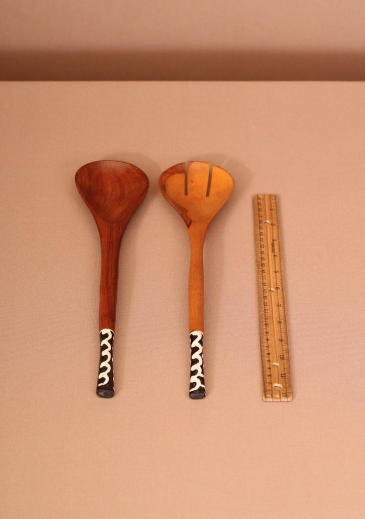 DESCRIPCIÓN: Casa de Lola trajo de África una colección padrísima de cucharitas, pinzas, chopstiks, y cubiertos para ensalada de madera. Entintados, tallados, lisos, con cuerno, con hueso; en fin, una variedad para que puedas escoger.