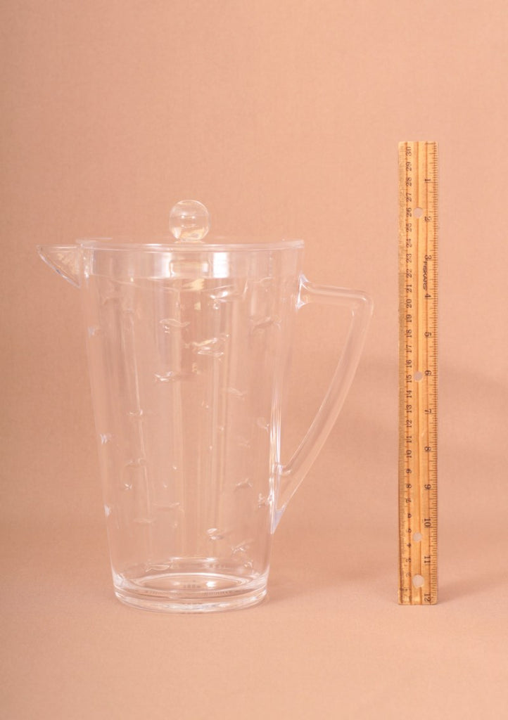 DESCRIPCIÓN: Jarra de acrílico canadiense de altísima calidad con peces grabados por toda la jarra. Chic y súper resistente. Ideal para casas con alberca.