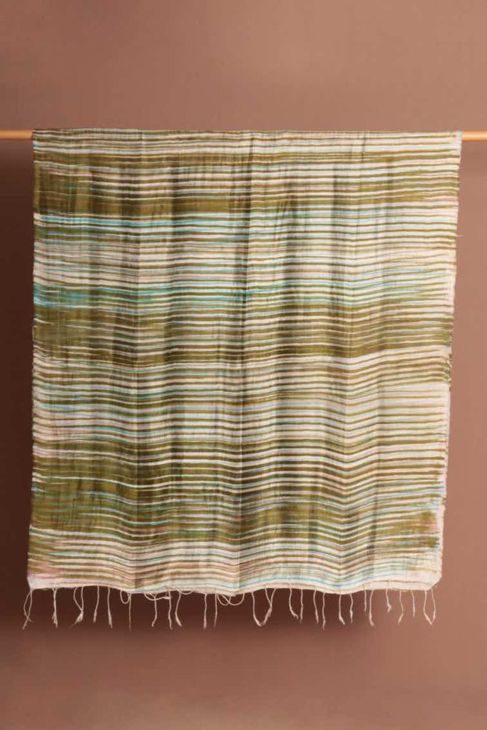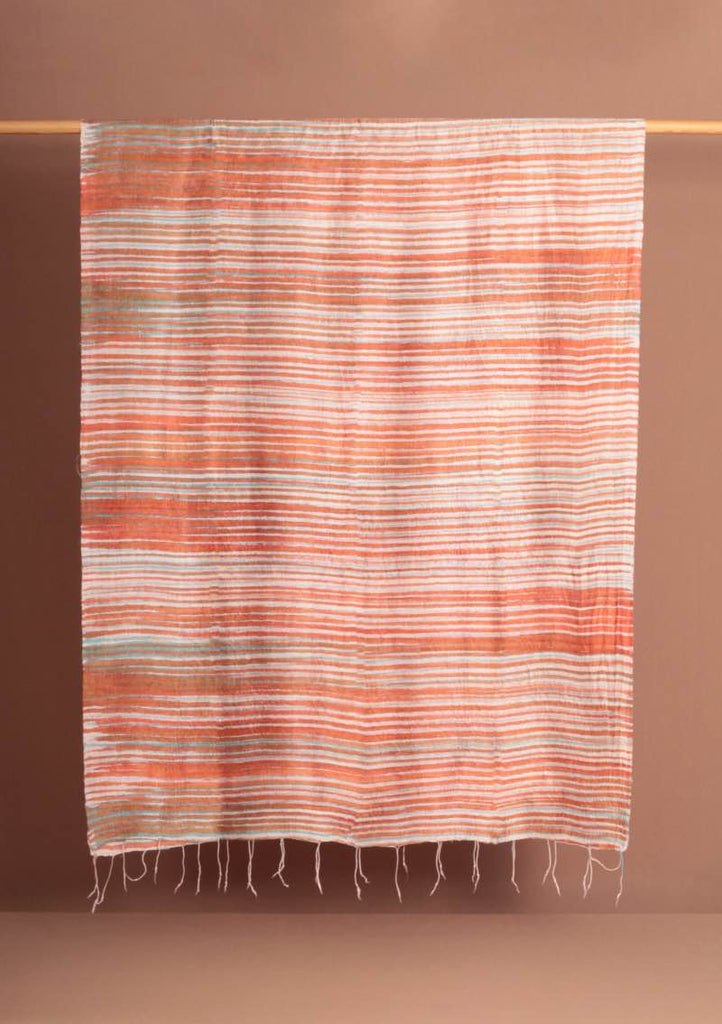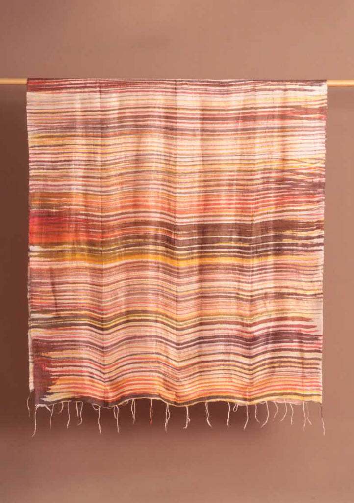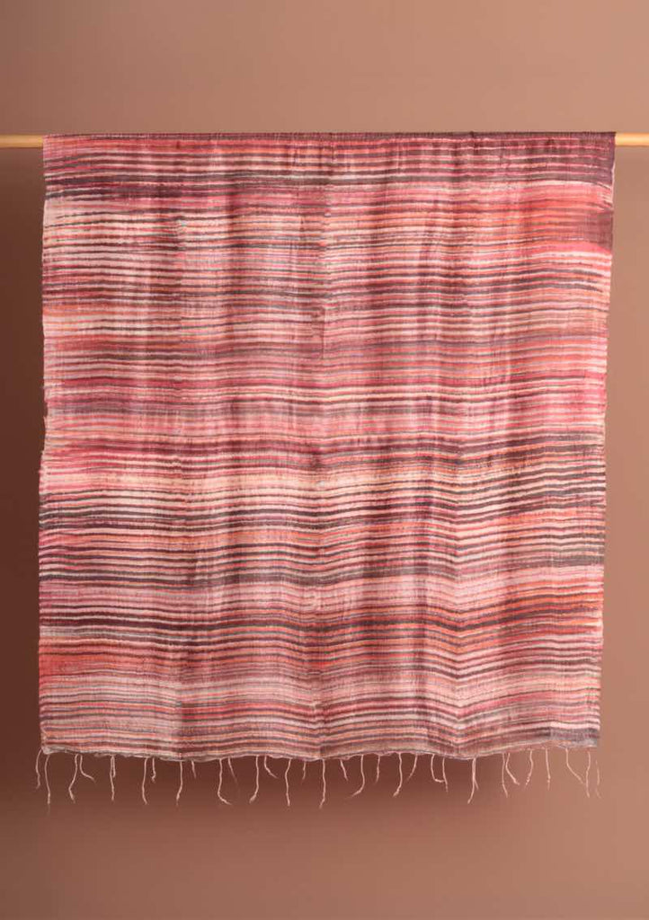 DESCRIPCIÓN: Un chal de seda cruda de Tailandia. Está tejido en telar tradicional a mano con seda sin tratar o procesar en exceso, así que se ve más natural y fina. Conserva la textura y características naturales de la fibra y por lo mismo tiene un aspecto distintivo y auténtico.