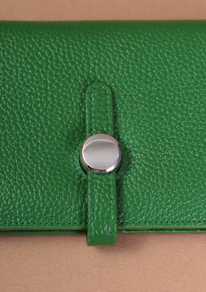 Cartera de piel con herrajes cromados, en distintos colores. Elegante y moderna, esta cartera es súper padre porque tiene todos los compartimientos perfectos como para que puedas llevar todo lo que necesitas.