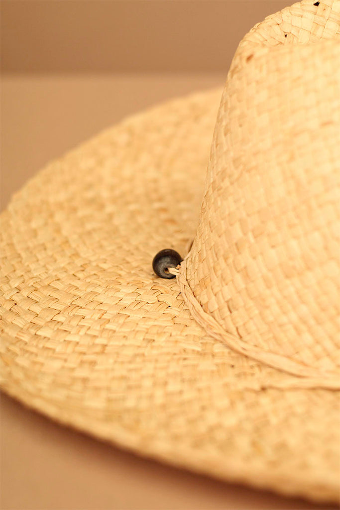 DATO INTERESANTE: Las fibras de rafia son tejidas y entrelazadas para crear un sombrero ligero y transpirable, ideal para protegerse del sol. El sombrero de rafia es reconocido por su amplia ala que brinda una buena sombra y protección adicional contra los rayos solares. Es comúnmente utilizado en climas cálidos y soleados, como en regiones tropicales o durante el verano.