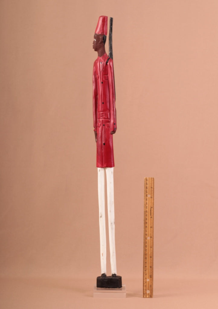 DESCRIPCIÓN: Figura representativa de un guardia ceremonial africano, pintada a mano; un objeto de decoración único.