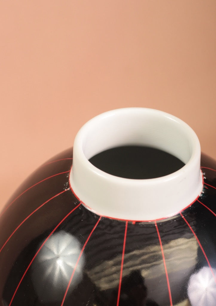 DESCRIPCIÓN: En Casa de Lola no puede faltar la colección de porcelana pintada a mano de la China tradicional. Este jarrón negro tiene una calidad padrísima y puede usarse con o sin tapa (sin tapa puede funcionar como florero).