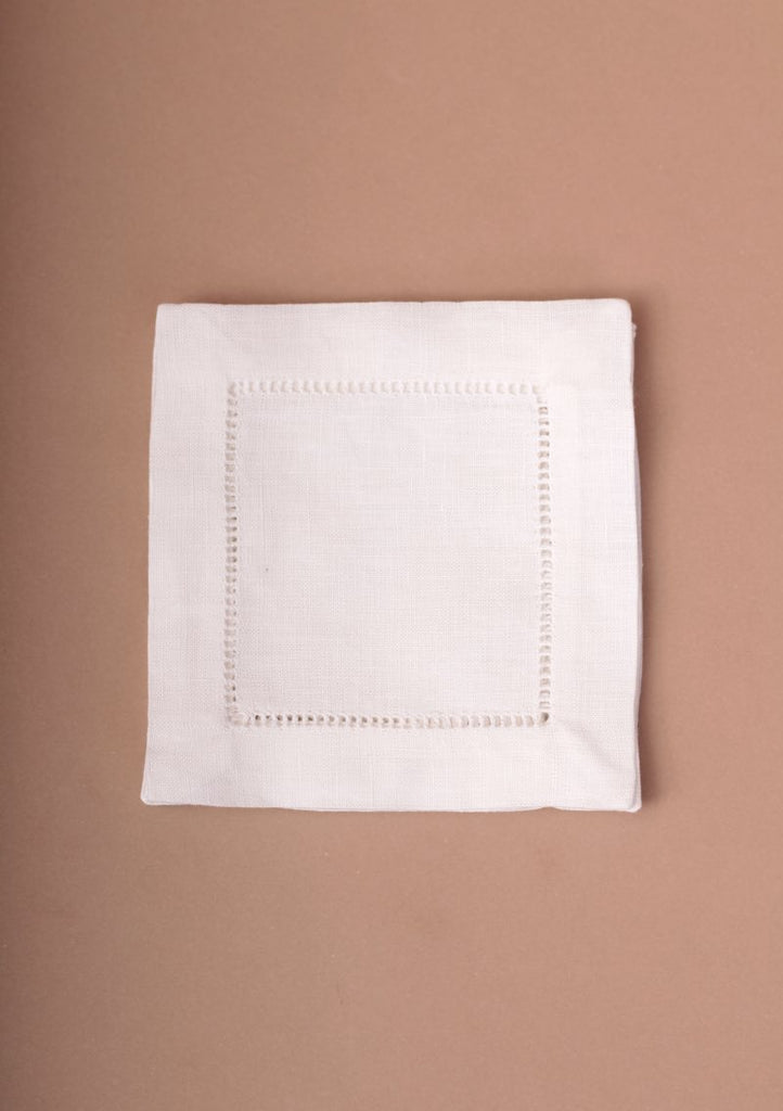 DESCRIPCIÓN: Juego de 6 servilletas de lino con diseño clásico de vainica simple.
