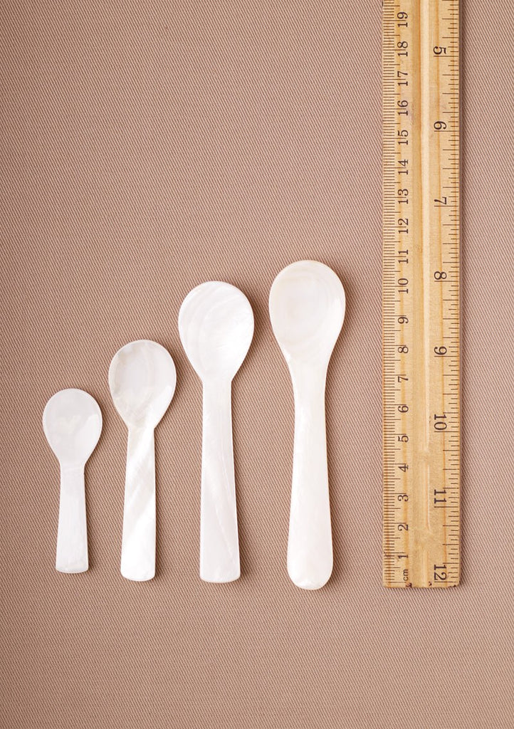 Muy clásicas y bonitas, además de Chic. Antes los cubiertos de Madre Perla se usaban solamente para servir CAVIAR. Hoy los podemos usar como más nos guste, para sal, especias, salsitas, etc. Tenemos de muchos tamaños.